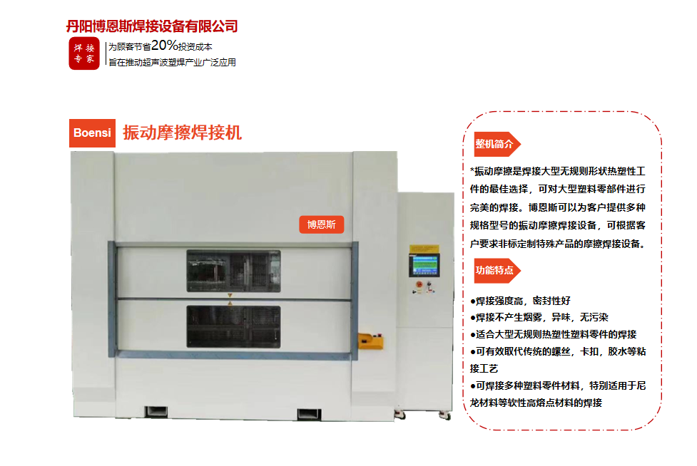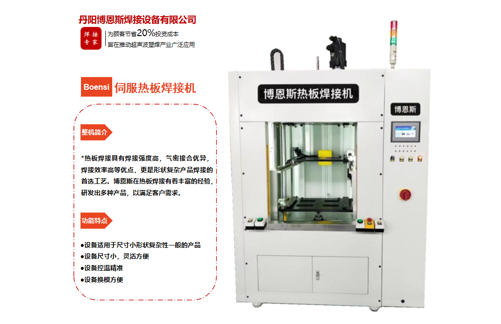 丹陽博恩斯焊接設備有限公司是塑料焊接領域集研發(fā)設計、生產(chǎn)制造、銷售服務為一體的企業(yè)。公司自成立以來堅持“以人為本”的理念,組織了一支強大的技術研發(fā)團隊,攜多年來積累的豐富經(jīng)驗,并結合國際先進塑料焊接技術,根據(jù)市場需要,不斷開發(fā)具有核心競爭力的新產(chǎn)品。公司具有很強的非標機械研發(fā)、設計、生產(chǎn)能力,可為廣大客戶定制各類專用機械設備。公司設計生產(chǎn)的塑料焊接設備已廣泛應用于汽車、電子、家電、醫(yī)療器械、無紡布...